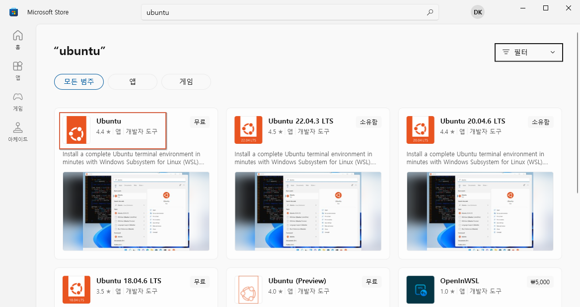 2. Microsoft Store에서 Ubuntu 설치 & 실행